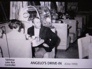 Situated at the corner of Kettering Blvd. and Marconi Avenue sits a small restaurant building that has had several names through the years. When it opened in 1954, Angelo’s Drive-in featured car hops for people to dine in their car or eat inside at tables. Each table was built with their own juke box controller. Angelo’s was known for their famous “Chickie in a Quickie” plate (deep fried chicken, fries, coleslaw and a hot roll for only $1.00), the “Chubby Boy” double decker hamburger, shrimp & fries. For teens and young adults Angelo’s was a popular place to hang out. With 23 carports, patrons could pull in and order from the microphone box while sitting in their car. A waitress would bring the food order out and collect the money. The fence behind the carports backed up against the backyards of homes on Fulton Avenue. Sometimes when teenage patrons cruised their cars through the parking lot, voices, shouts, or revived engines often became loud, much to the disgust of residents sitting in their backyards or in their nearby homes. Due to occasional fights and telephone calls from neighbors, Moraine Police regularly patrolled the parking lot.