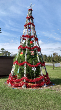 This Roadside Attraction was a Big Bust! After hiking all day at Merrit Island, I told Rosie we would enjoy the Christmas lights, shops, and a good restaurant at this Christmas themed hamlet. Not. There was nothing there. Other than the post office where you could drop off mail to be stamped from Christmas and a special mail slot for Santa, the sparse population only had a tall, year-round Christmas tree and the worst nativity scene ever. Jesus, Mary, and Joseph were there but only one wise man instead of three and he was disproportionately smaller than baby Jesus. Yep, that was it. We did see Christmas Cemetery and Fort Christmas but didn’t stay to tour it. We left town hungry and disappointed.