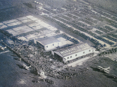 In the photo notice that the Moraine Field hangar still has the painted words “Dayton Municipal Airport” on it. That is because Moraine Field was Dayton’s first municipal airport from 1926 to 1928.