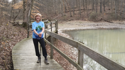 We immediately descended a steep trail to a quiet, marshy pond with a long boardwalk on the north side. We saw a dozen large and small turtles sunbathing on logs. Turning right we crossed the boardwalk, turned left, and ascended the steep trail up the ridge. I could hear woodpeckers pecking away on trees as we crossed the ridge. Movement in the woods on my right revealed a wild turkey (sorry, not the kind you drink in a bottle) and later I saw a blue heron. Eventually, the trail circled around back to the pond. The lazy turtles were still on the logs staring at us. We ascended the trail up the steep hill to the parking lot. This trail was just shy of one mile in length but a great workout on this 64-degree day, another unusually warm yet wonderful winter day.