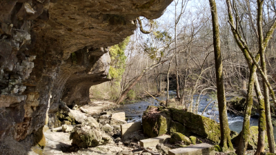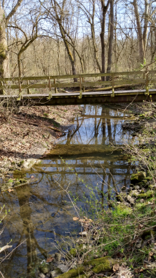 This was a fun solo trek. Beginning at the log house, the PWL Trail went for 1.2 miles past many rock formations before branching off at Old Channel Loop Trail. The OCL Trail took me through a small gorge with twenty-foot rock formations on each side until coming to a bridge over Massie Creek. The bridge was downriver from the waterfall through a rock gorge. On the other side of the creek was the Gorge Trail but I elected to stay and continue on this side of the river. The .7-mile OCL Trail took me back into the woods on a craving trail until it connected back with the other half of the PWL Trail.