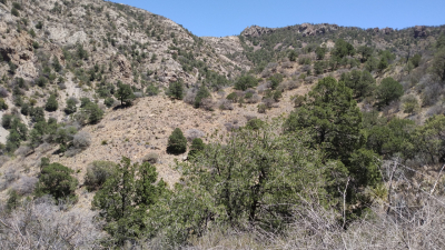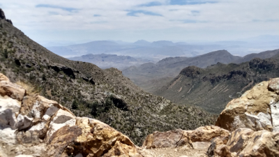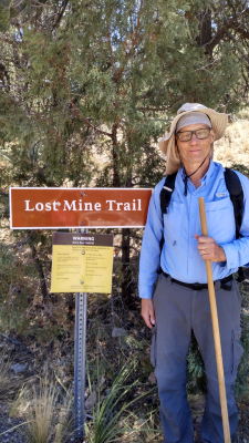 As the afternoon temperatures soared to 82 degrees even at this high altitude, this tough trail climb (1,100 feet gain) was worth it as once we crested the ridgeline, it was a beautiful, picturesque view. We had excellent mountain and desert views especially looking southeast down Juniper Canyon and the northeast rim of the Chisos Mountains. We could also see the Rio Grande River snaking between the USA and Mexico. This viewpoint was between Lost Mine Peak at 7,550 ft and Case Grande at 7, 325 feet. There was little shade on this trail, so I was glad the last mile of this 3.2-mile trek was downhill. Near the trailhead (photo #2) was a large century plant. This was our fourth and final hike of the day, so we drove north out of the park and 100 miles to our campground at Fort Stockton. Temperatures reached 102 degrees in the flat basin.