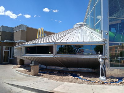 It was Mother’s Day. Jacque had sent Rosie a surprise gift and Rosie talked to Matt, Holly & Jacque on the phone throughout the day. We left Carlsbad KOA Campground after getting our photos taken with green aliens and headed to Alamogordo via famous Roswell. Naturally, I stopped by Roswell for lots of alien photos and purchased a few souvenirs for family and friends. The real find was stopping in The Alien Invasion Store, next to the International MUFON UFO Museum. I interviewed manager Gina. Her husband’s grandfather was the Assistant Fire Chief at Roswell and responded to the 1947 UFO crash. I bought an artist’s sketch of what he witnessed as he pulled up to the site. A complete story of what he saw is under “Paranormal Category” on my website. My favorite photo during the visit is the “Welcome to Roswell” crash scene art where I stand in the scene (Photo #5). Can you find me?