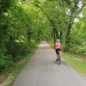 We began our 18-mile bicycle ride at Riverscape Metropark in downtown Dayton going northeast on the Mad River Bike Trail and connecting east of Eastwood Metropark for eight miles on the Iron Horse Trail. The Iron Horse Trail was 90 percent tree covered making for a pleasant ride on this hot, humid day. We turned around near the border of Kettering but hope to return and bike the remaining section another day.