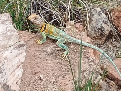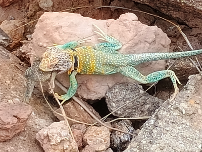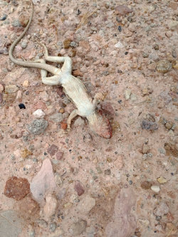 One funny nature story. Descending the trail, we came across a female lizard (Photo #5) who was about a foot away from a deceased lizard (Photo#6) which we assumed was her husband. The female lizard would not move away so we politely did not threaten her and hiked around her. Returning on the same trail 30 minutes later we noticed the deceased lizard was gone. Looking around we found the female lizard enjoying a good meal, her husband (Photo#8). LOL. Ah, Mother Nature!