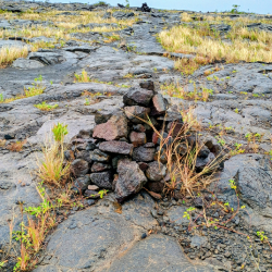 Rosie’s knee was hurting so she stayed in the car. I hiked this 1.6 mile out and back trail which was mostly hard black volcanic lava with occasional patches of black sand. It was rough on the knees and legs. A half mile onto the trail a very strong wind began blowing in my face along with blinding rain. Everywhere I looked was black lava rock. It was easy to get lost. I thought that perhaps the Hawaiian Gods were telling me to turn back. I said no way. This was a challenging and exciting adventure. Fortunately for me, up ahead were many ahu’s (stone cairns, which were stacks of black rock) marking the way. I finally came to a rectangular wooden boardwalk and the rain and winds stopped. As I walked around the boardwalk, on each side of me were thousands of very clear petroglyphs carved into the lava flow made by people between 1200 and 1450 AD. How the people lived in this harsh land was incredible. The design of each glyph (called piko puka) is as unique as the individual who created it. Some are carved deep, some shallow, others are more extravagant with many holes and circles providing a glimpse into their life experiences and their struggles. I eventually hiked back over the lava trail and as I crested a hill, I could see my lovely bride standing by the car worried and watching for my safe return.