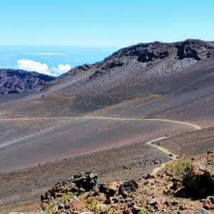 Rosie rested at the trailhead (later we decided that she had a little bit of high-altitude sickness) so I hiked 1.1 mile on this soft sand trail before turning around. The trail wound between, and around large rocks then dropped 100 feet and headed across the south side of the crater floor. The view of the crater was beautiful. I could look across in the distance to the far west side of the crater that we just hiked an hour before. Due to the elevation and soft sand, it took a lot longer to hike uphill out of the crater, but it was worth it.