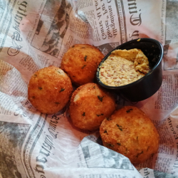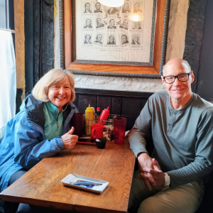We stopped in after my cancer checkup at the OSU James Hospital in Columbus before we hiked at the nearby Glen Helen Nature Preserve. I enjoyed sauerkraut balls as an appetizer with cod fish, fries and cole slaw as my lunch entrée. Rosie enjoyed a black bean burger and homemade warm potato salad.