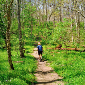 We hiked several trails on this day, but the new one-mile trail was the Vista Loop Trail. We ascended lots of steps up a steep hill and across the rim before dropping down to another trail. We passed an old stone chimney-looking structure and passed lots of wildflowers. A few people were kayaking on the Little Miami River.