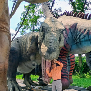 An unexpected Roadside Attraction which I first noticed because the brontosaurus neck and head rose above a tree line. Located at Legend Valley Concert Venue, the three life size dinosaurs were decorations for the Lost Land festival held in the summer of 2024. They were quite impressive.