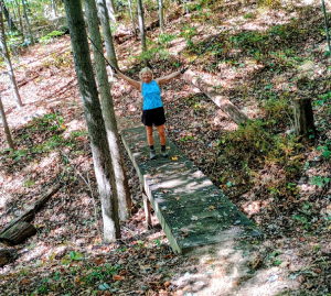 We woke up to an amazing sunrise over the Ohio River looking south into Kentucky. We drove 14 miles to the state park. This trail was a rolling 3.4-mile trail through a thick forest with some leaves on trees beginning to turn fall red colors. A couple mountain bike spur trails crossed our hiking trail. Near the end, a disc golf tee and fairway in the thick trees intersected our trail.