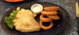 This was a tasty and nostalgic roadside attraction built around the Andy Griffith Show theme. The restaurant, established in 1989, featured home-cooked meals just like Aunt Bee put on the table for Andy and Opie Taylor. There were autographed photos on the wall, six TV sets playing the Andy Griffith Show and a replica police car parked outside. The warm comfort food was delicious. I ordered Opie’s Prize Catch Bluegill which was six bluegills (the first time I have ever eaten bluegill fish), potatoes and onion rings. Delicious! Other items on the menu were Barney’s Burger, Otis’s Whiskey Burger, Floyds Catfish and Aunt Bee’s Fried Chicken. Rosie and I had a rare desert and split “Monkey on your Back” which was a warm chocolate brownie, ice cream & chocolate fudge. Fantastic. Rosie enjoyed watching the show on TV while we ate.