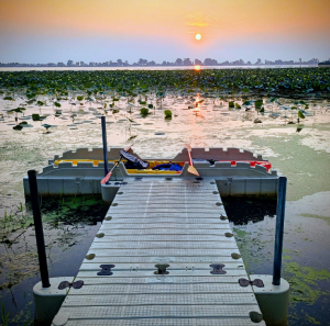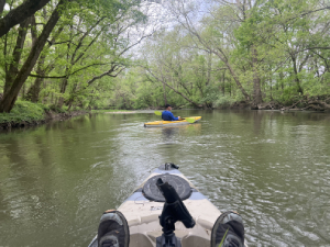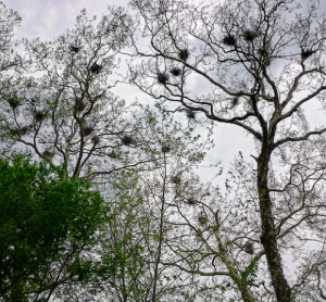 We began at Blue Spring Landing where, in the 1870’s and 1880’s, five steamboats a day stopped here for freight and tourists as they traveled up and down Florida. Our boat passed Blue Spring Run where later we saw nine manatees as we hiked the Boardwalk Trail. As we slowly boated upriver, we occasionally encountered a few kayakers. During our trip we saw one manatee just below the surface chewing on vegetation. Mostly we saw alligators and many blue herons, egrets, buzzards and other large birds.