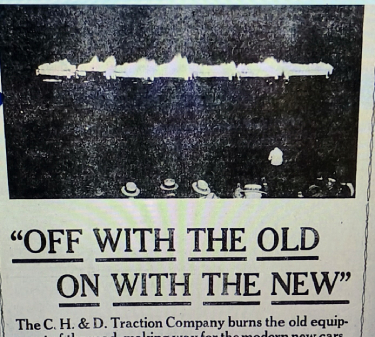 As the company burned the old Hills & Dales trolley cars, it celebrated at the same time the birth of a new child. The C, H & D Railway suddenly rose from being “one of the poorest” interurban traction lines in the country to one of the leading.