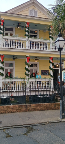 In the very haunted city of Charleston, South Carolina, we attended catholic mass at the beautiful Cathedral of St. John the Baptist. Five blocks away we grabbed brunch at one of the hundreds of old Charleston historic buildings. The restaurant was named Poogan’s Porch, named after a friendly, stray dog named Poogan, who guarded over the house for seven years greeting guests. Poogan is buried there, his grave is by the front entrance steps.