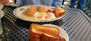 Once a stately house, built with Southern-style knotted pine floors and porches in 1891, later transitioning to a restaurant. The food was delicious as Rosie had a tomato pie omelet and I enjoyed eggs and biscuits & gravy. The restaurant is frequented by celebrities, politicians, locals and tourists.