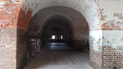 Joe Gillivan also related an unexplainable observation. Joe was completing hiking the Lighthouse Overlook Trail and approached the fort from the northeast side. Looking up at the area of the northeast bastion, above the 32-foot wall Joe saw a man in union uniform. The time was 5:30ish and Joe knew the fort closed at 5pm and no one should have been in the fort. Did Joe see a ghost of the past or was some park employee dressed in Union garb still inside the fort after hours? Are Union and Confederate spirits still on duty here? Photo #3 shows the northeast bastion from the inside of the fort where joe saw the soldier. This is also the direction the patron videotaped the drummer in the previous paragraph.