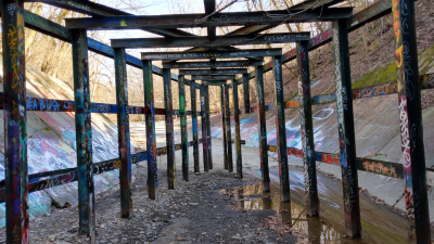 I place this location under the Paranormal Category only because it is remote and creepy location. However, I feel that any haunting here is just a made-up urban legend. The Gates of Hell has also been referred to as the “Blood Bowl” or the “Portal to Another World”. Actually, this “evil” place is just a large drainage culvert directing water from Glen Echo Creek under High Street to flow into the Olentangy River. The site is behind a Tim Hortons restaurant but is well isolated by trees on both banks. The creek banks are also very high and steep. Concrete walls were poured to prevent erosion making it a great place in dry weather for skateboarders. The “Blood Bowl” name came from alleged stories of skateboarders who were injured, bloodied, or died from severe daredevil accidents. Another urban legend claims that inside the dark tunnel is a portal to another world and that people perform dark rituals there. The bottom line is that this is just a water drainage culvert that looks foreboding and has metal bars (or gates) in front of the entrance to prevent logs and other debris from clogging up the tunnel.